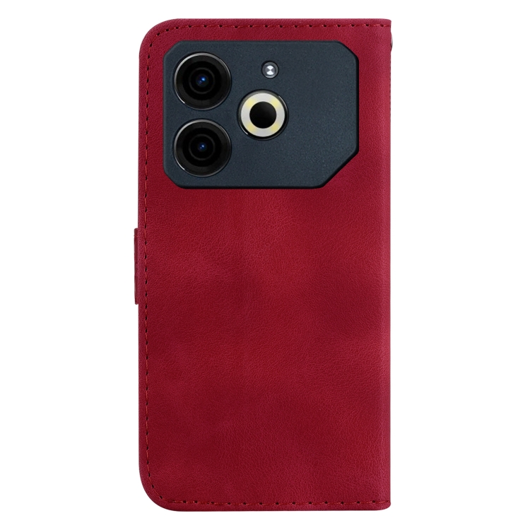 Funda de Cuero con Relieve en Forma de Siete para Tecno Pova 6 Neo (Rojo)