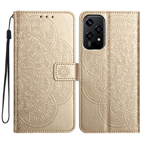 Funda de Cuero con Relieve Floral para Honor 200 Lite (Dorada)