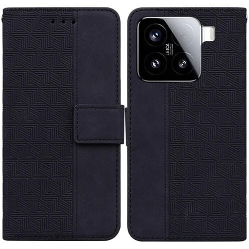 Funda De Cuero Con Relieve Geométrico Para Xiaomi 15 (Negra)
