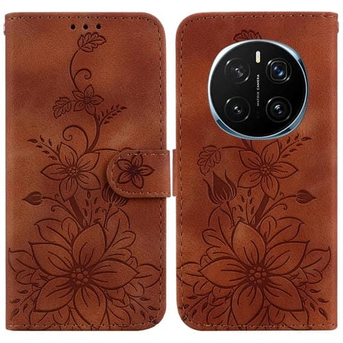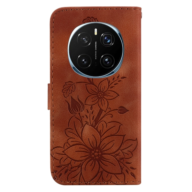 Funda de Cuero con Relieve de Lirio para Honor Magic7 Pro (Marrón)