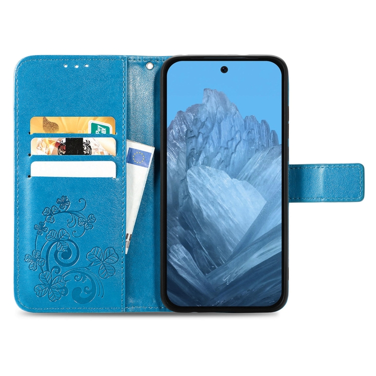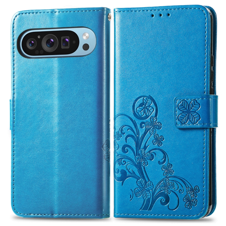 Funda de Cuero con Relieve y Cierre de Cuatro Hojas para Google Pixel 9 (Azul)