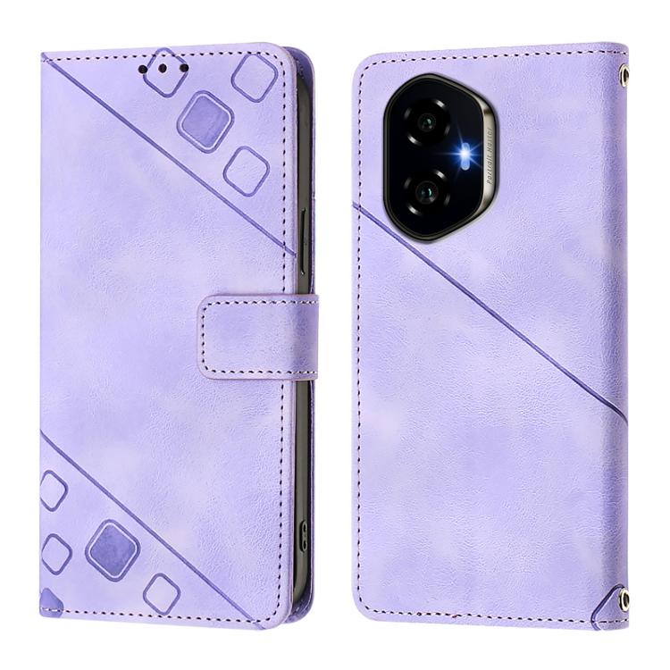 Funda de Piel con Relieve para Honor 300 5G (Morado Claro)