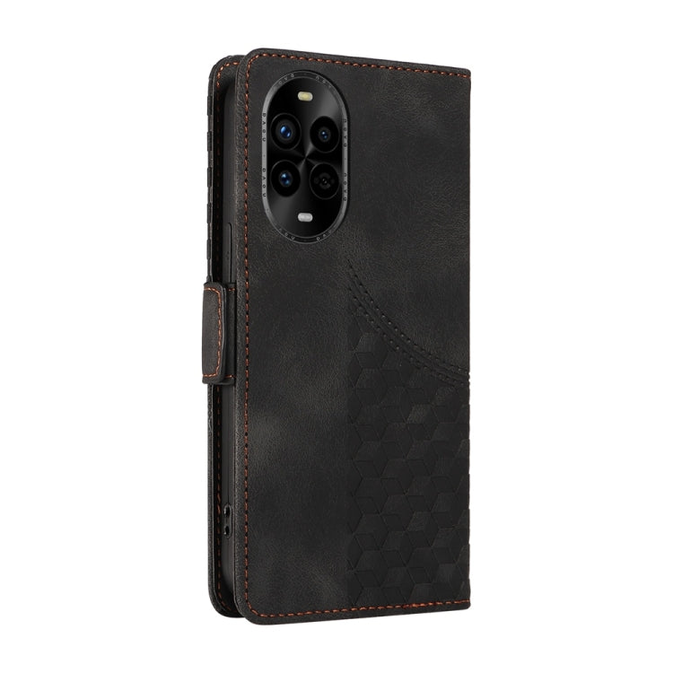 Funda de Cuero Huawei Nova 13 Pro con Rombos en Relieve y Estrellas (Negra)