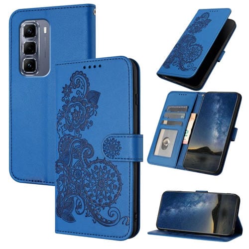Funda de Cuero con Tapa y Relieve Flor de Datura para Infinix Hot 50 Pro+ 4G (Azul)