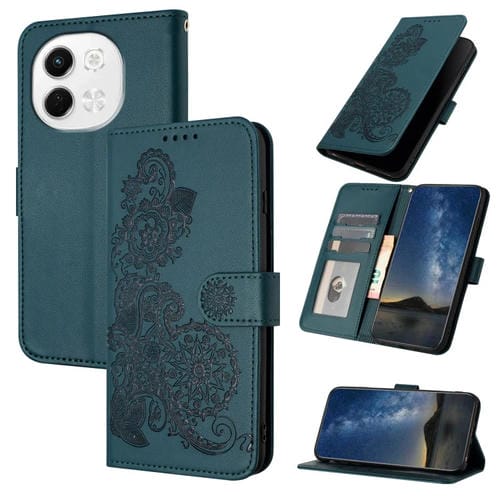 Funda de Cuero con Tapa con Relieve Flor de Datura para Tecno Pova 6 Neo 5G Spark 30 5G (Verde Oscuro)
