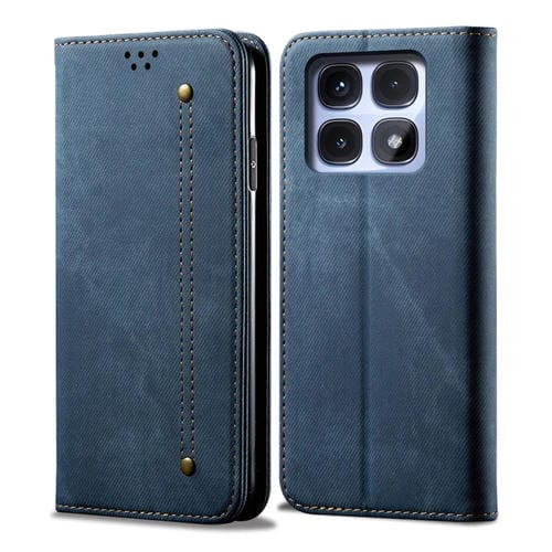 Funda de Cuero con Tapa Horizontal con Textura Vaquera y Estilo Casual para Redmi K70 Ultra 5G (Azul)