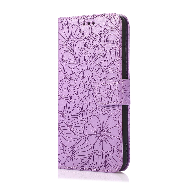 Funda de Cuero Girasol iPhone X / Xs Tapa Horizontal Soporte Tarjetas Billetera Cordón (Púrpura)