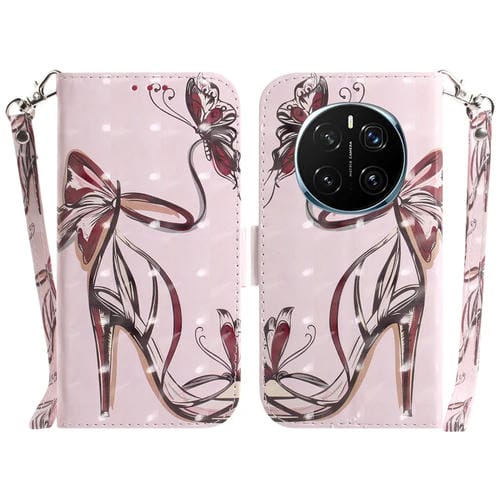 Funda de Cuero con Tapa Horizontal 3D para Honor Magic7 Pro (Mariposa y Tacón Alto)