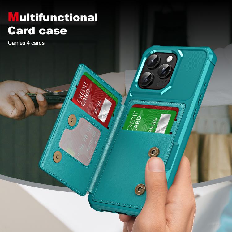 Funda de Cuero con Tapa Horizontal para iPhone 16 Pro Max con Tarjetero (Verde Cian)