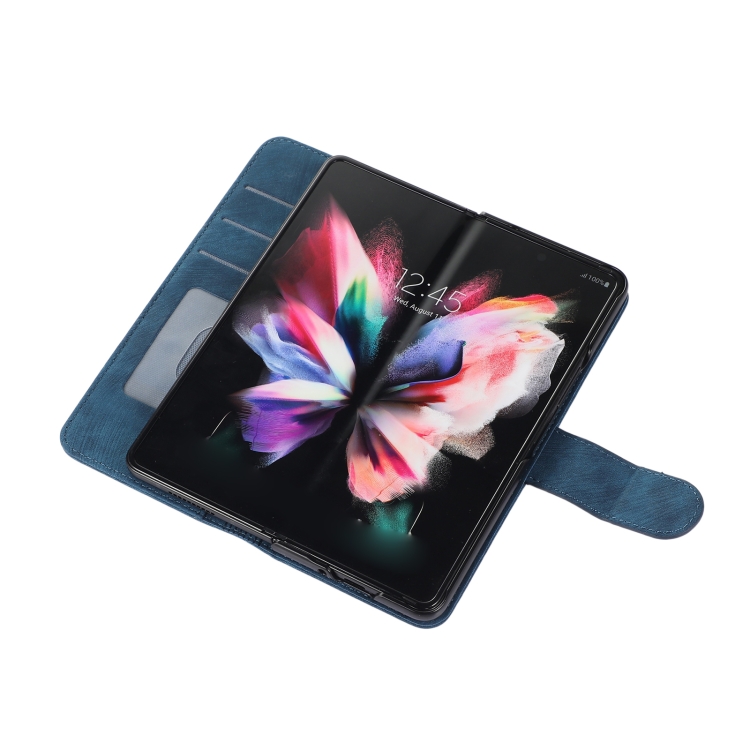 Funda de Cuero para Samsung Galaxy Z Fold4 con Tapa Horizontal y Ranura para Bolígrafo (Azul)
