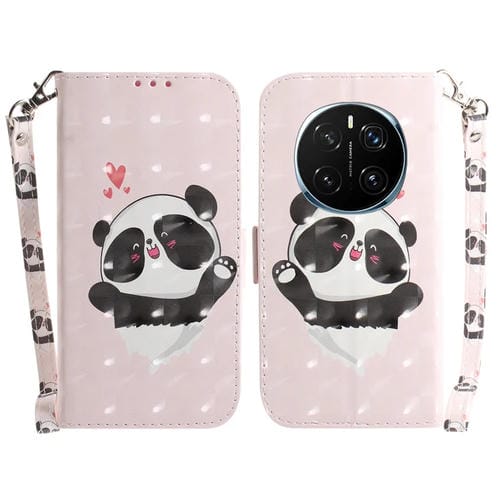 Funda de Cuero con Tapa Horizontal y Diseño 3D para Honor Magic7 Pro (Corazón de Panda)