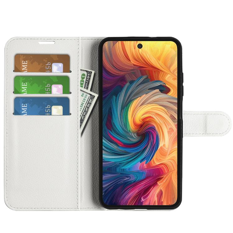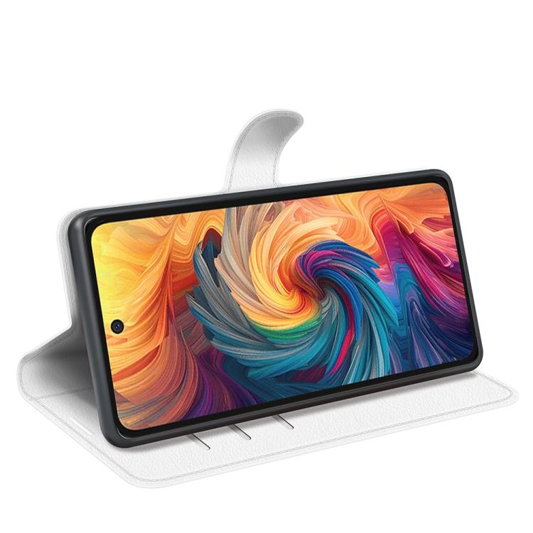 Funda de Cuero para ZTE Blade V70 con Tapa Horizontal y Textura de Lichi con Soporte (Blanco)