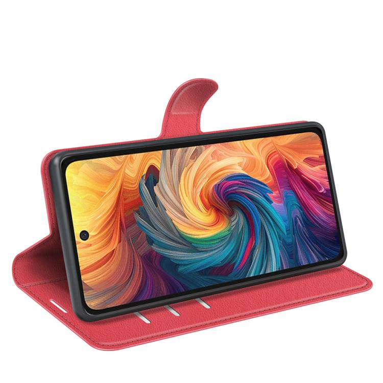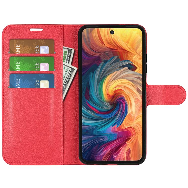 Funda de Cuero para ZTE Blade V70 con Tapa Horizontal, Textura de Lichi y Soporte (Rojo)
