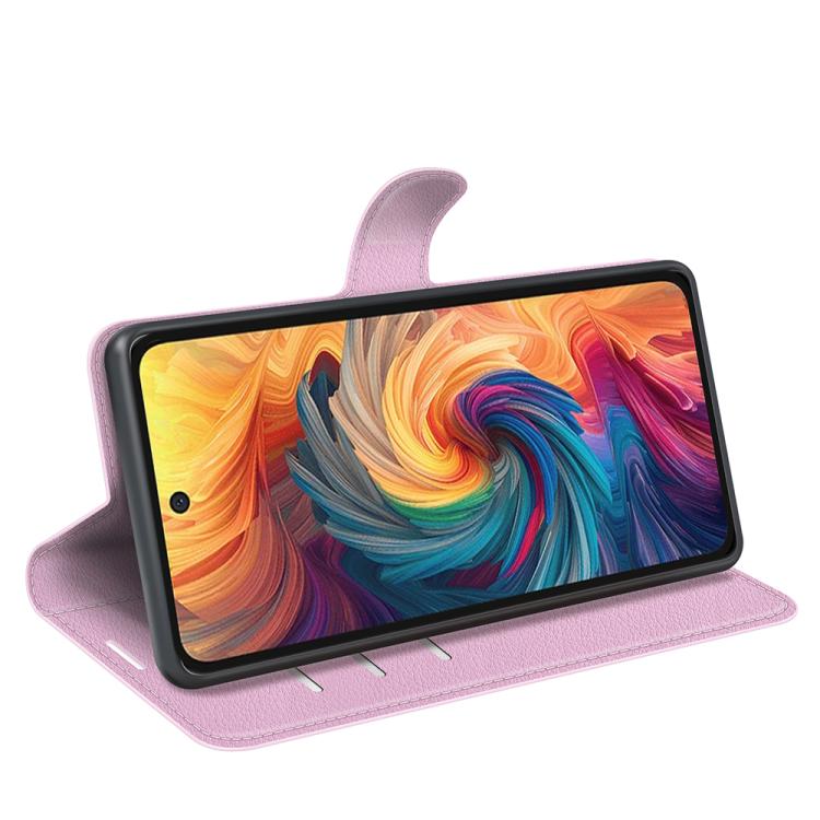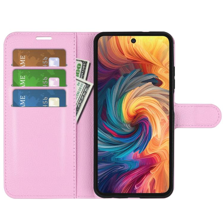 Funda de Cuero para ZTE Blade V70 con Tapa Horizontal y Textura de Lichi con Soporte (Rosa)