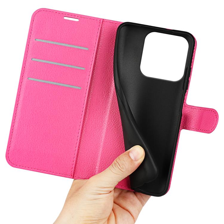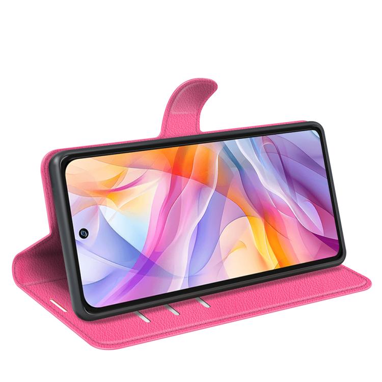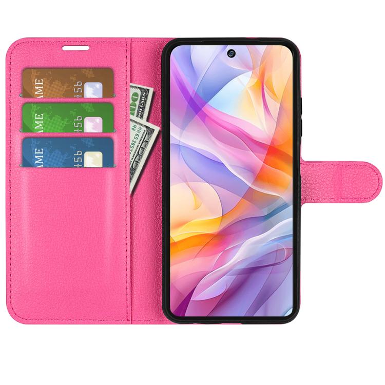Funda de Cuero con Tapa Horizontal y Textura de Lichi para ZTE Blade V70 Vita con Soporte (Rosa y Rojo)