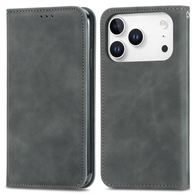 Funda de cuero con tapa magnética y diseño retro para iPhone 17 Pro (gris)