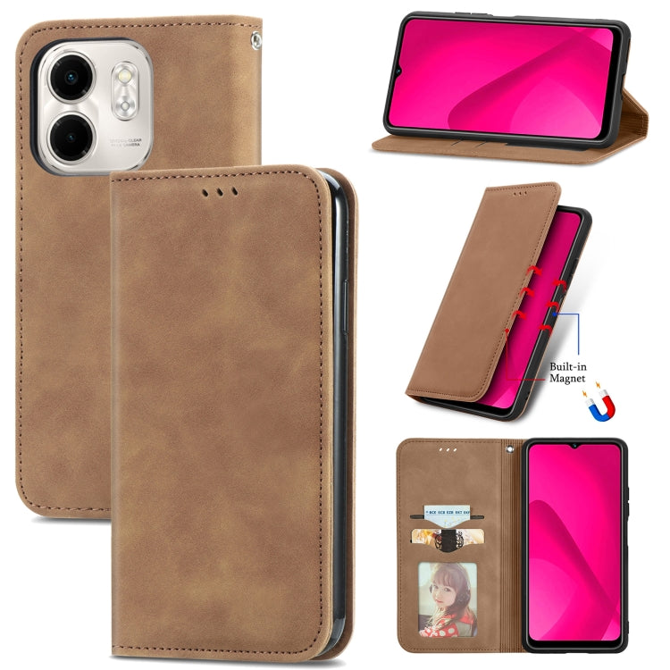 Funda de Cuero con Tapa Magnética para Teléfono Infinix Smart 9 (Marrón)