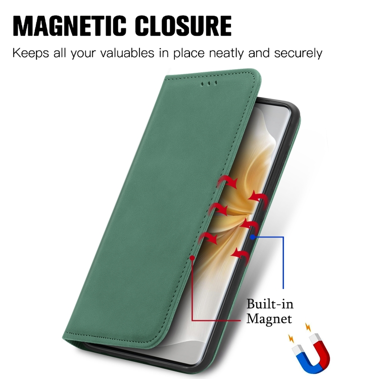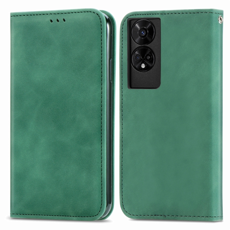 Funda de Cuero para TCL 50 5G con Tapa Magnética y Tacto Retro (Verde)