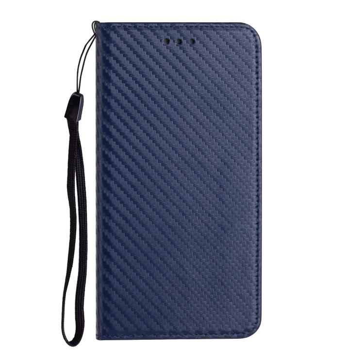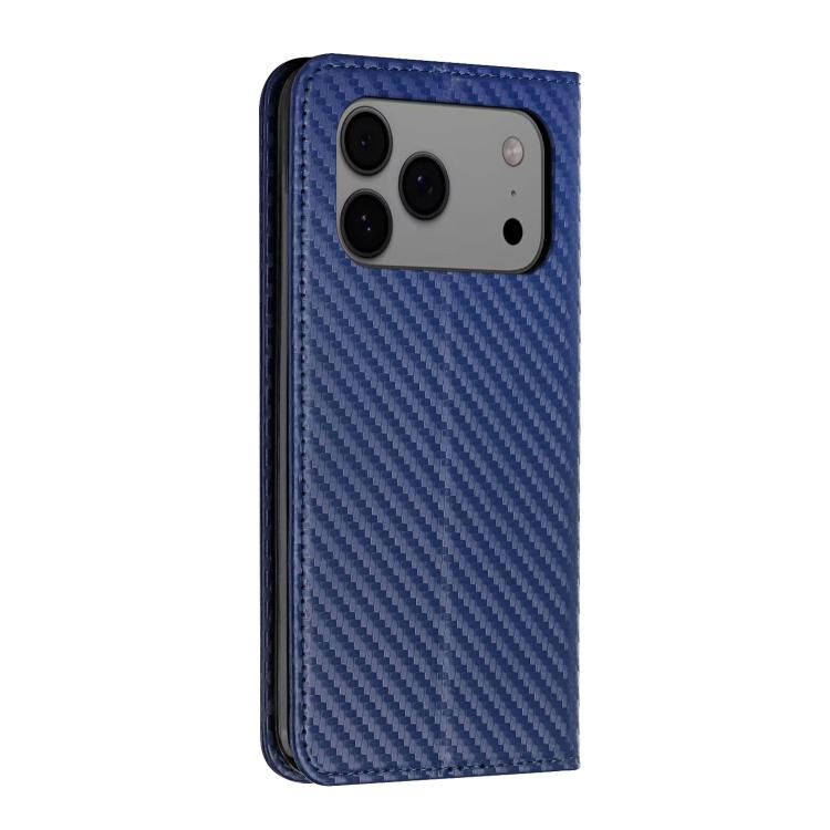 Funda de cuero con tapa magnética y textura de fibra de carbono para iPhone 17 Pro Max (azul)