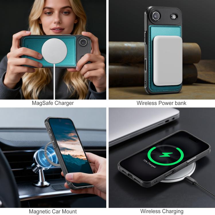 Funda de cuero con tapa para iPhone Air JEEHOOD J10, con ranuras para tarjetas y MagSafe, con división RFID (verde)
