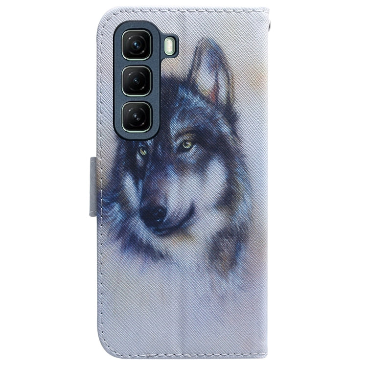 Funda de Cuero con Tapa para Infinix Hot 50 5G con Dibujo Colorido (Lobo Blanco)