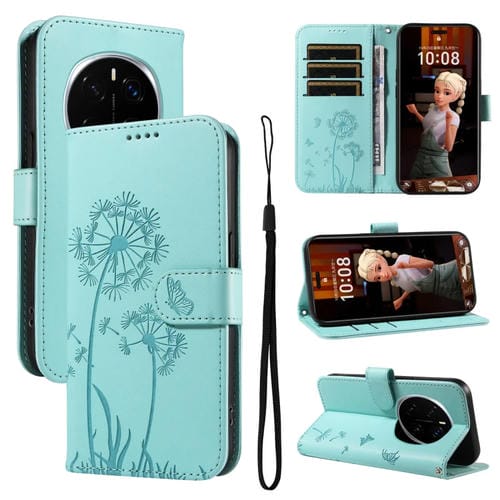 Funda de Cuero con Tapa y Estampado Diente de León para Honor Magic7 Pro (Verde)