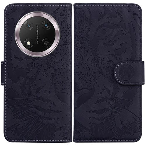 Funda de Cuero con Tapa y Estampado de Tigre para Honor X9C (Negra)