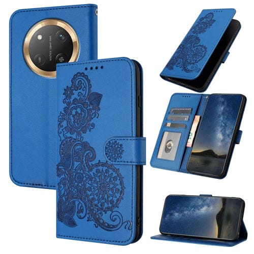 Funda de Cuero con Tapa para Honor X9C Global con Relieve de Flor de Datura (Azul)