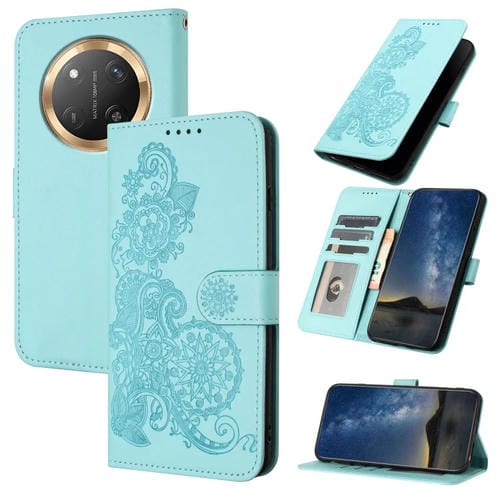 Funda de Cuero con Tapa y Relieve Flor de Datura para Honor X9C Global (Azul Claro)