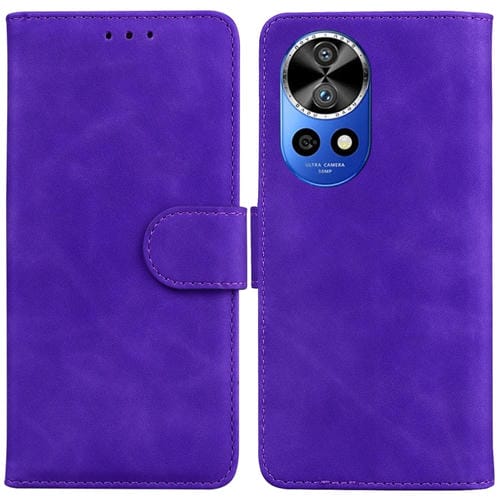 Funda de Cuero con Tapa para Huawei Nova 12 Pro Skin Feel Pure Color (Morado)