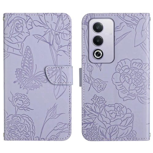 Funda de Cuero con Tapa para Teléfono Oppo A3 Pro 5G India Ht03 con Diseño de Mariposas En Relieve (Morado)
