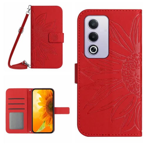 Funda de Cuero con Tapa para Teléfono Oppo A80 Eu / A3 Pro Global Skin Feel con Relieve de Girasol y Cordón (Rojo)