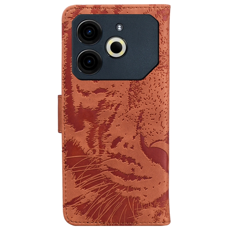 Funda de Cuero con Tapa para Teléfono Tecno Pova 6 Neo Estampado de Tigre (Marrón)