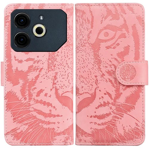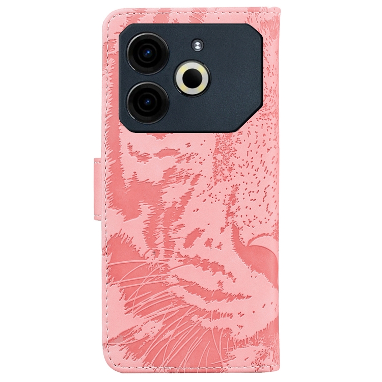 Funda de Cuero con Tapa para Teléfono Tecno Pova 6 Neo con Estampado de Tigre (Rosa)