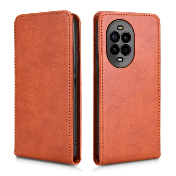 Funda de Cuero con Tapa Vertical Magnética para Huawei Nova 13 Pro (Marrón)