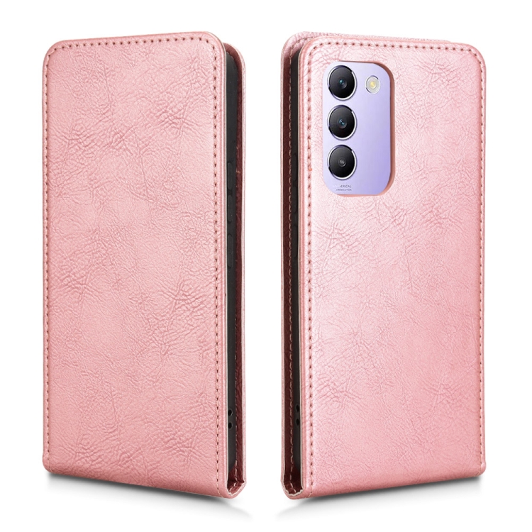 Funda de Cuero con Tapa Vertical Magnética para Teléfono Vivo V40 Se 5G / Y100 5G Idn (Oro Rosa)