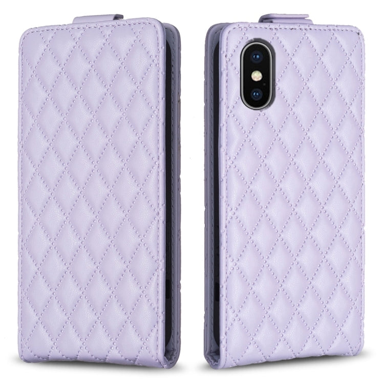 Funda de Cuero con Tapa Vertical para iPhone Xs Max Diamond Lattice (Púrpura)