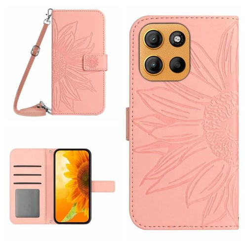Funda de Cuero con Tapa y Cordón para Motorola Moto G Stylus 5G 2025 Ht04 (Rosa) Diseño Girasol