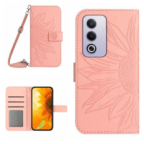 Funda de Cuero con Tapa y Cordón para Oppo A80 Eu/A3 Pro Global Skin Feel Sun Flower En Relieve (Rosa)