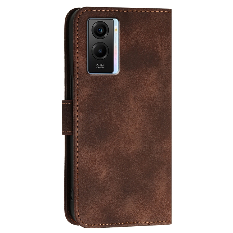 Funda de Cuero con Tapa y Cordón para Vivo Iqoo U5E 5G / Y30 5G Yx0080 con Diseño En Relieve de Mariposa y Cuadrícula (Café)