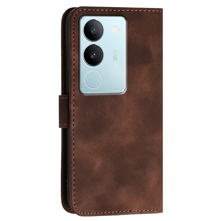 Funda de Cuero con Tapa y Cordón para Vivo V29 Pro Yx0080 con Diseño En Relieve de Mariposa y Cuadrícula (Café)