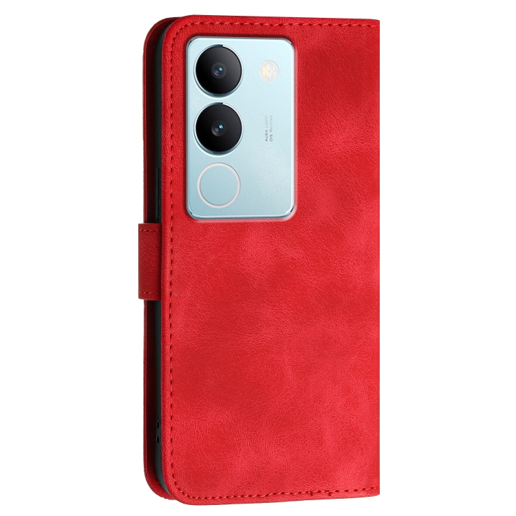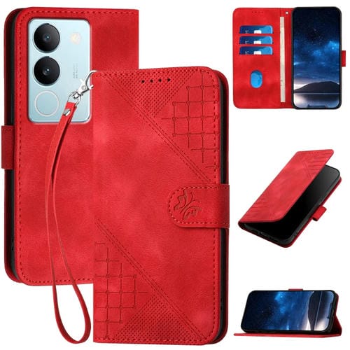 Funda de Cuero con Tapa y Cordón para Vivo V29 Pro Yx0080 con Diseño En Relieve de Mariposa y Cuadrícula (Rojo)