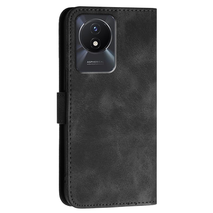 Funda de Cuero con Tapa y Cordón para Vivo Y11 2023 / Y02T Yx0080 con Diseño En Relieve de Mariposa y Cuadrícula (Negro)