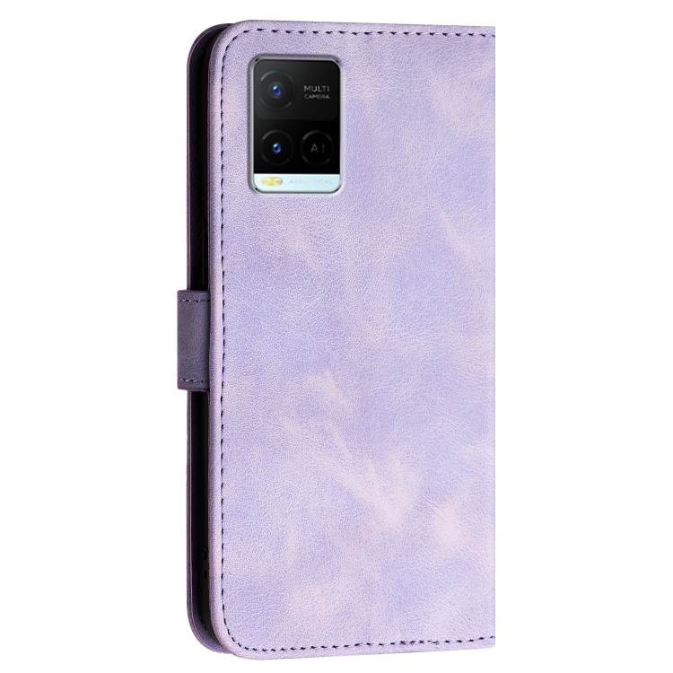 Funda de Cuero con Tapa y Cordón para Vivo Y21 / Y33S / Y21S Yx0080 con Diseño En Relieve de Mariposa y Cuadrícula (Morado Claro)