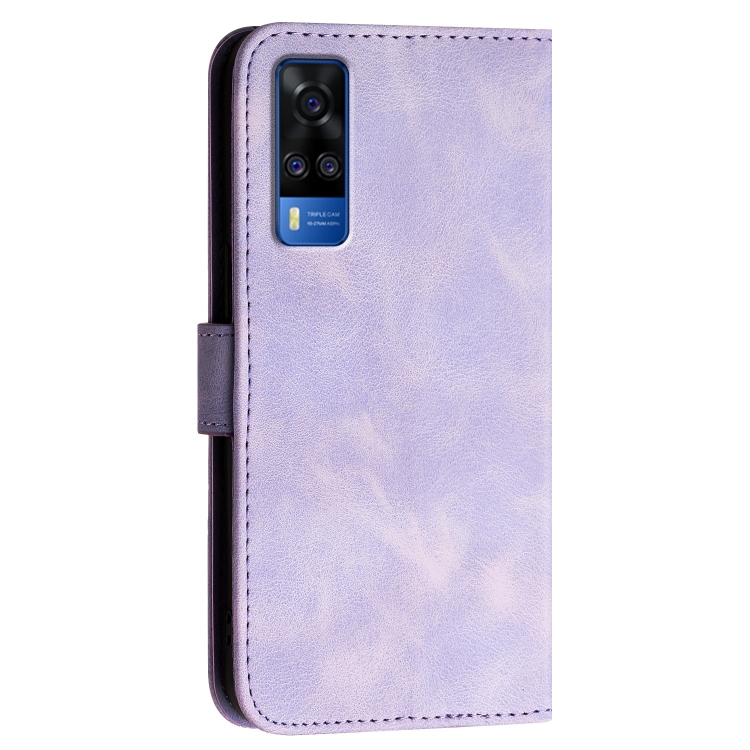 Funda de Cuero con Tapa y Cordón para Vivo Y31 4G India Yx0080 con Diseño En Relieve de Mariposa y Cuadrícula (Morado Claro)