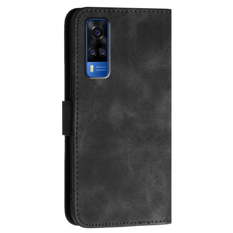 Funda de Cuero con Tapa y Cordón para Vivo Y53S 4G / Y51A / Y33 4G Yx0080 con Diseño En Relieve de Mariposa y Cuadrícula (Negro)