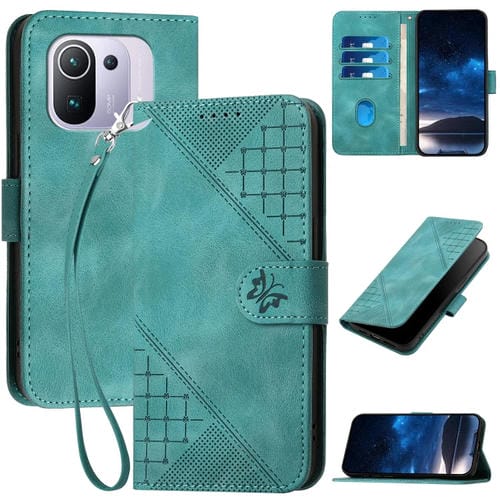 Funda de Cuero con Tapa y Cordón para Xiaomi Mi 11 Pro Yx0080 con Diseño de Mariposa En Relieve y Cuadrícula (Azul Claro)