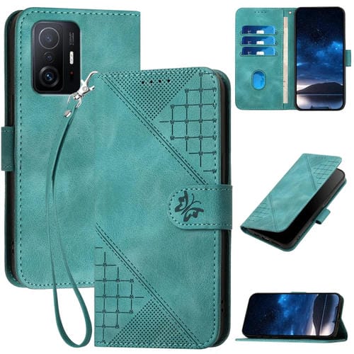 Funda de Cuero con Tapa y Cordón para Xiaomi Mi 11T Yx0080 con Diseño de Mariposa En Relieve y Cuadrícula (Azul Claro)
