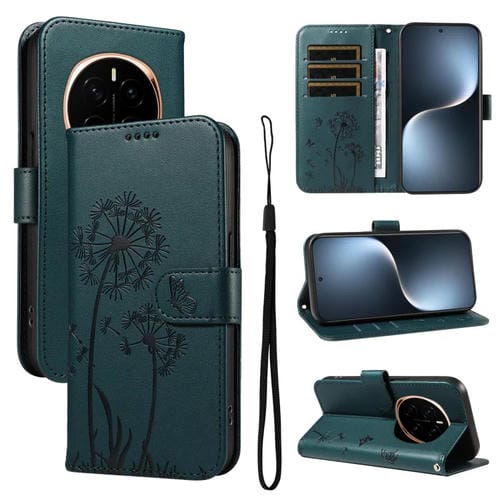 Funda de Cuero con Tapa y Estampado Diente de León para Honor Magic7 5G (Azul)