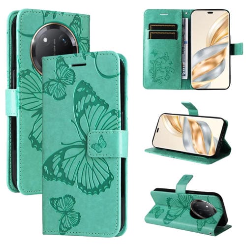 Funda de Cuero con Tapa y Mariposa en Relieve 3D para Honor X9C 5G Global (Verde)